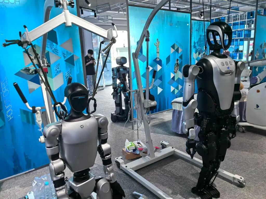 深圳龙岗机器人6S店里展出的两款人形机器人。新华社记者 梁希之 摄