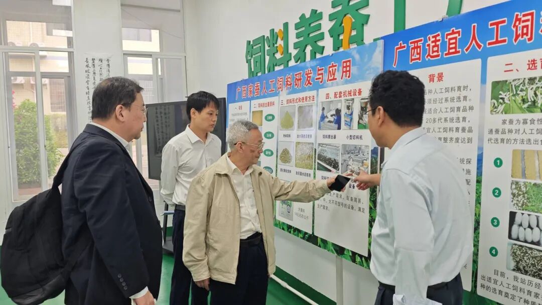 调研过程中,专家团队依次走访了人工饲料养蚕研发中心、桑树资源圃、广西蚕桑遗传改良与高效种养重点实验室以及科研成果展示馆,并与自治区蚕业技术推广站的领导及相关科室负责人进行了座谈交流。