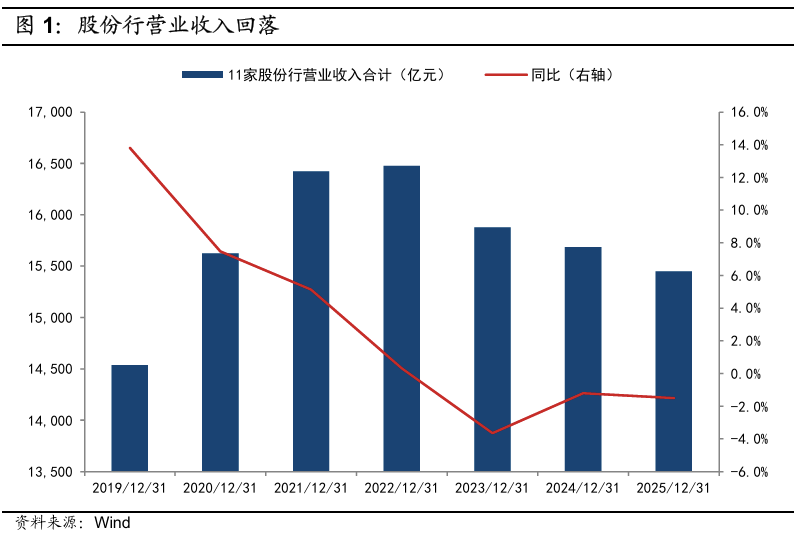 曾在银行业内表现亮眼的全国性股份制商业银行(简称“股份行”),近三年陷入收入利润双降的困境。本文基于11家已披露2025年年报的股份行汇总数据展开分析。