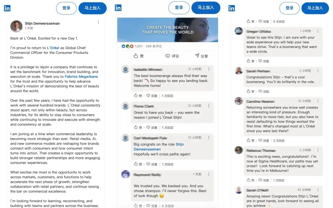 Stijn Demeersseman在LinkedIn帖子中透露:“最让我兴奋的是有机会跨市场、跨客户、跨职能开展工作,助力欧莱雅加速下一阶段增长,加强与零售伙伴的合作,持续提升商业标准。”