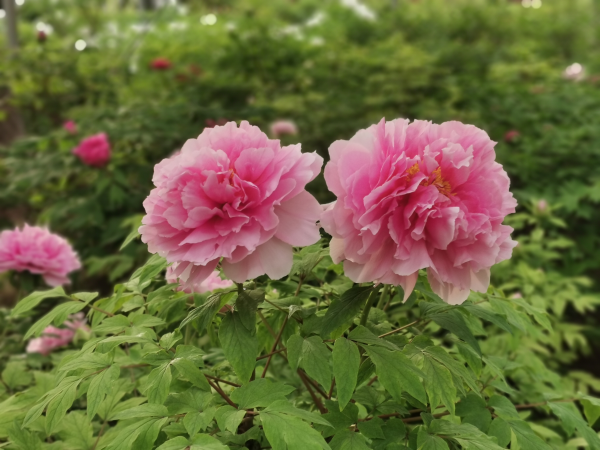 国际牡丹园:全园约80个牡丹品种开放,分布在华夏园、锦绣园、林下花境、二环路、生产科技园等处。盛开品种有东篱银菊(新品种)、麻姑献寿(新品种)、冬凌桃仙(新品种)、珊瑚台、太空牡丹红花类型、太空牡丹凤丹类型、粉中冠、春日山、明星、景玉等;初开品种有脂红、迎日红、卷叶红、绿幕隐玉、花王、春柳等。园内荷包牡丹、樱花、黄刺玫、贴梗海棠等竞相开放。