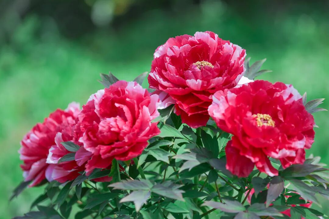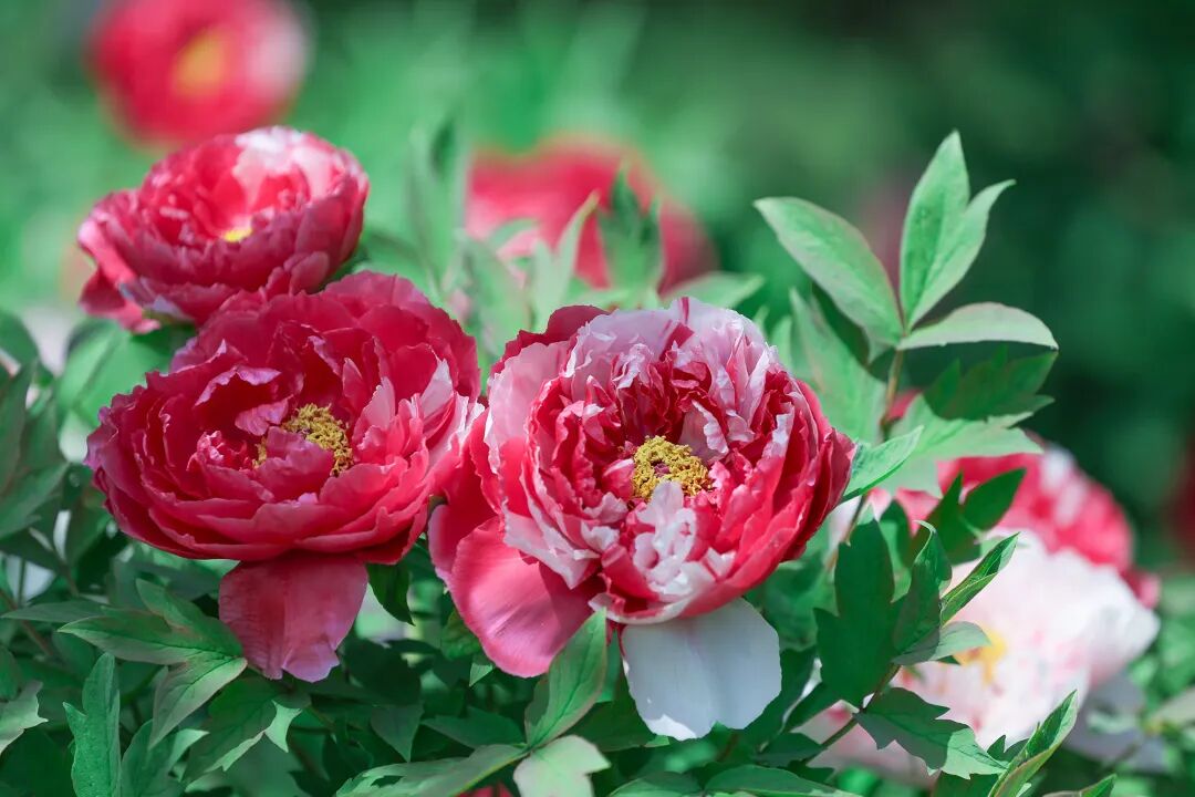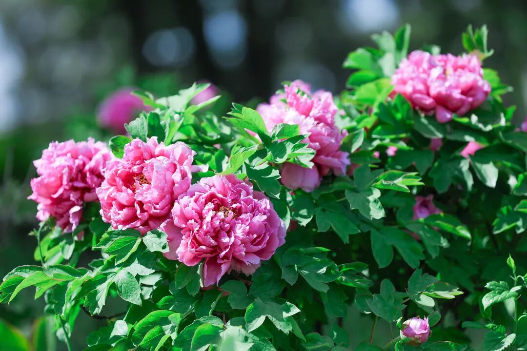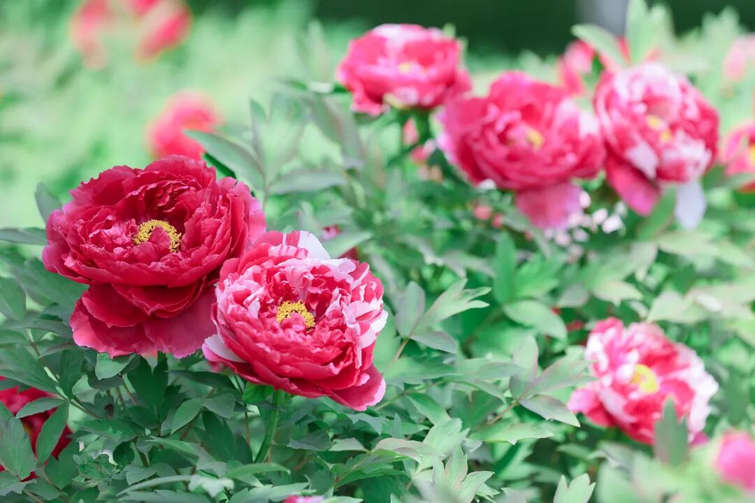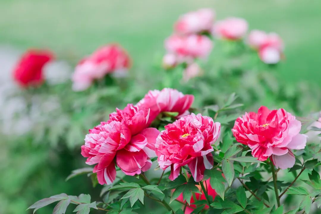 一朵朵、一簇簇牡丹悄然舒展身姿