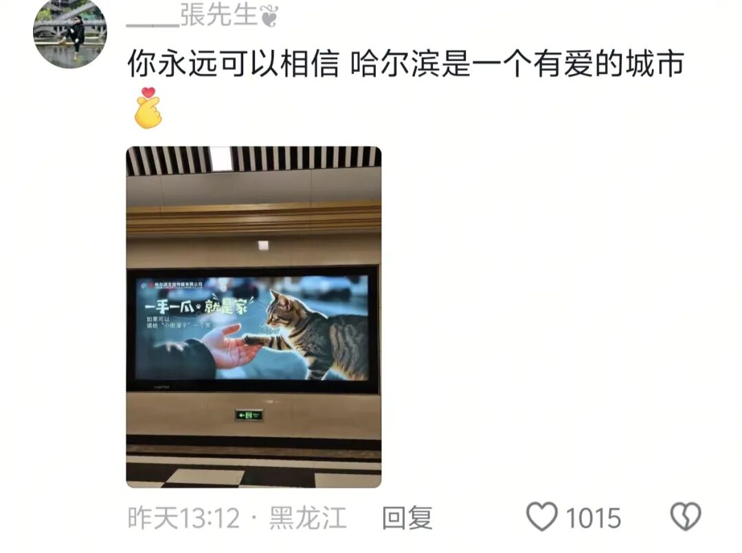 还有高赞评论:“你永远可以相信,哈尔滨是个有爱的城市。”