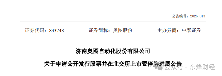 4月7日,济南奥图自动化股份有限公司(简称“奥图自动化”)发布公告,宣布拟终止向不特定合格投资者发行股票,并撤回在北京证券交易所的上市申请材料。距离其IPO中止仅过去一周。