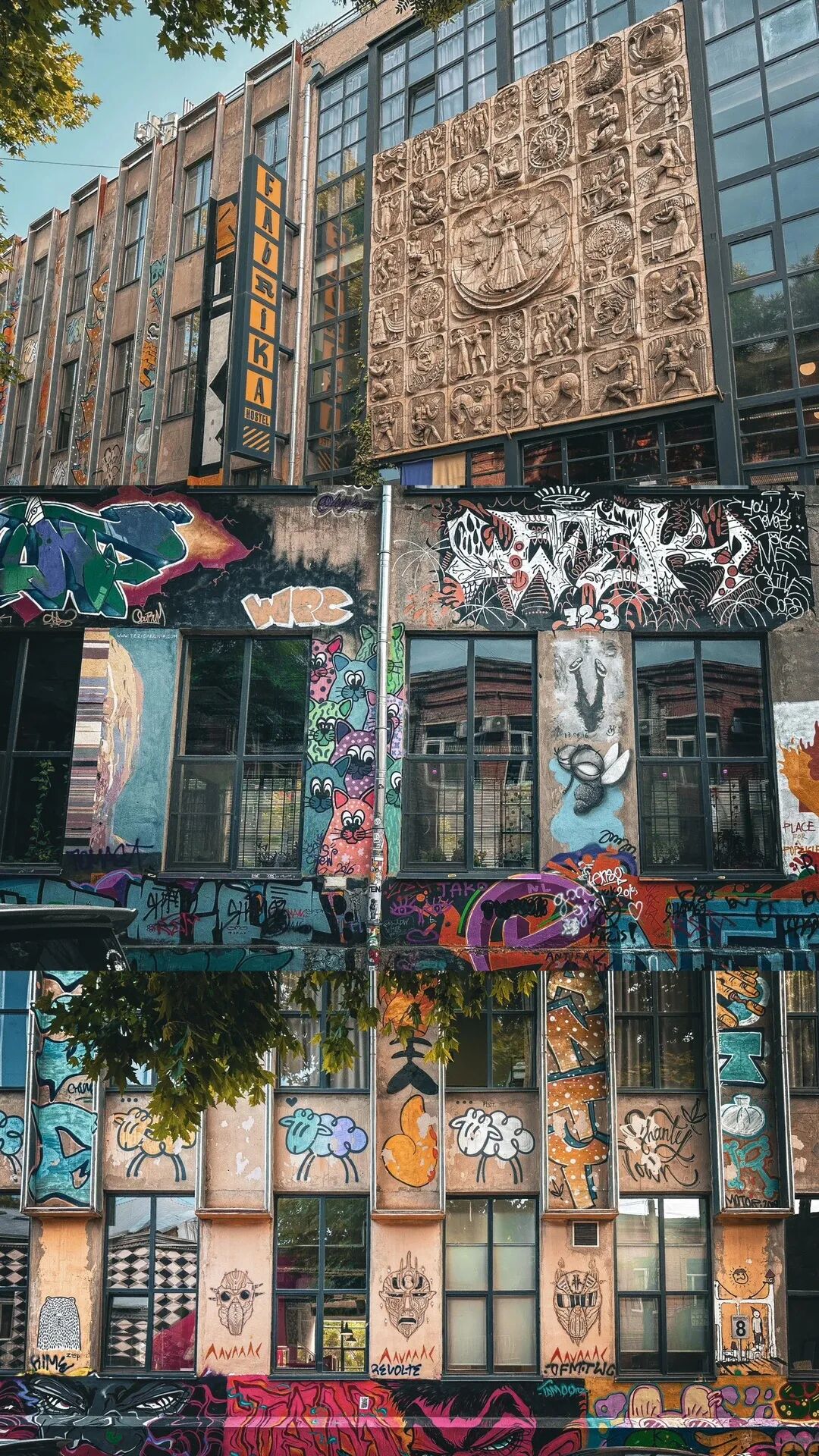 年轻且张扬的Fabrika青年旅社的外立面 图片提供 / 小红书博主@季涼一