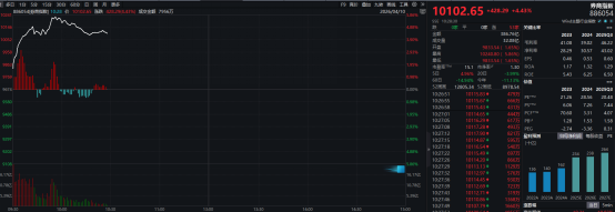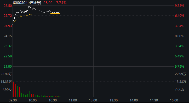其他多只券商股也普遍大涨,其中互联网券商龙头东方财富盘中一度大涨近8%,股价重回20元以上;长江证券、兴业证券盘中涨幅超6%。