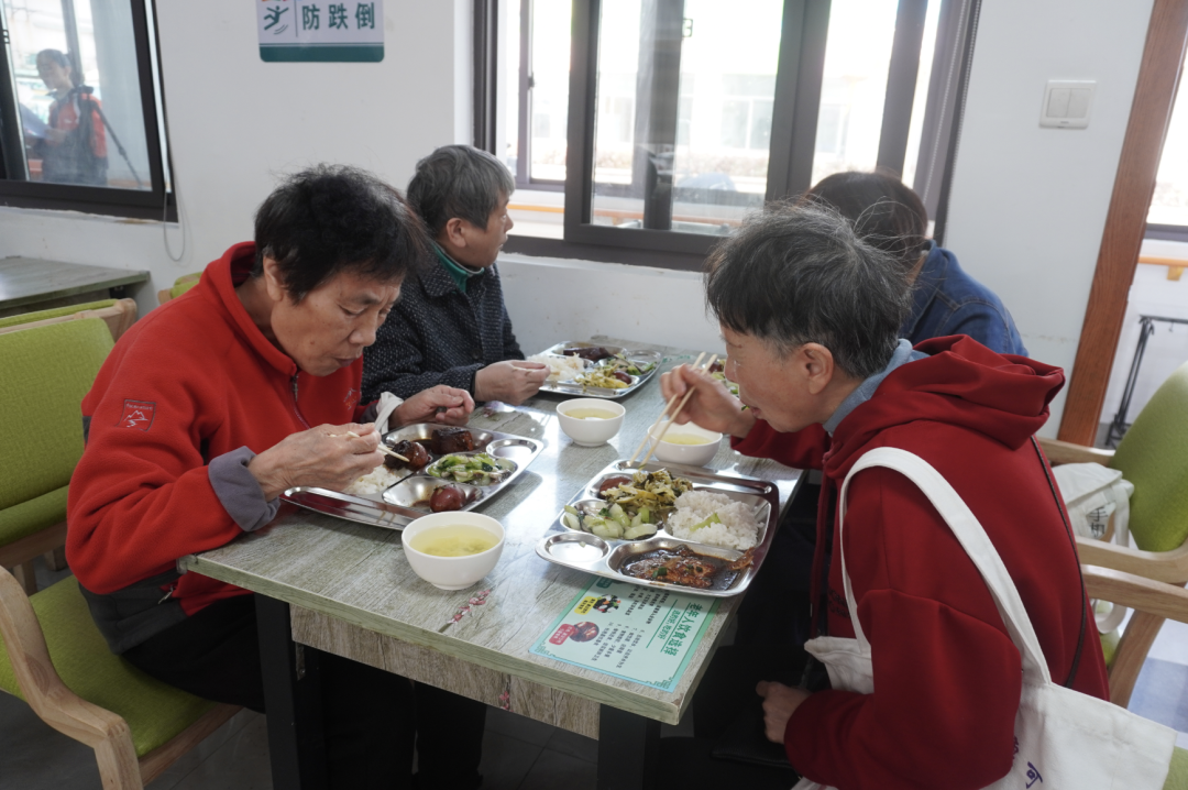 工作人员介绍,食堂每天准备两大荤、两小荤、两素供选择,菜品都是按长辈口味定制的,软糯易嚼、少油少盐,营养搭配均衡,每一份饭菜都热乎乎的,吃得舒服又放心。
