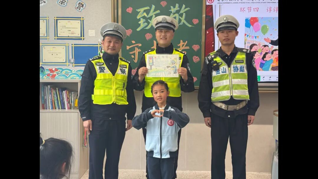 4月9日下午,华东师范大学第二附属中学金山实验学校一(2)班的微班会上,金山交管支队一大队交警庄智源激动地说道。