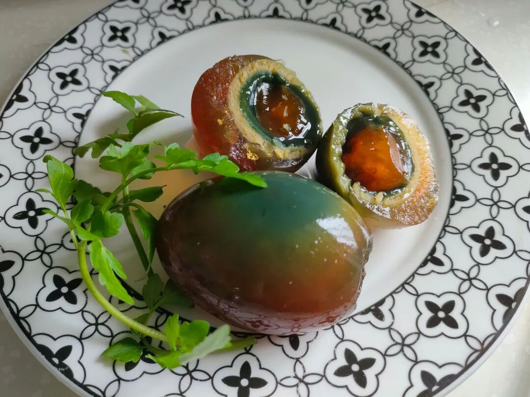 砻糠皮蛋的制作有讲究,每年3月中旬到6月初是黄金期。这段时间日均气温稳定在20℃以上,裹好料的皮蛋在阴凉处密封一个月就能吃了。做好的皮蛋蛋清青黑透亮,蛋黄溏心绵密,咬一口鲜香扑鼻,越嚼越有味道。2022年,这项传统手艺入选了松江区第九批非物质文化遗产名录。