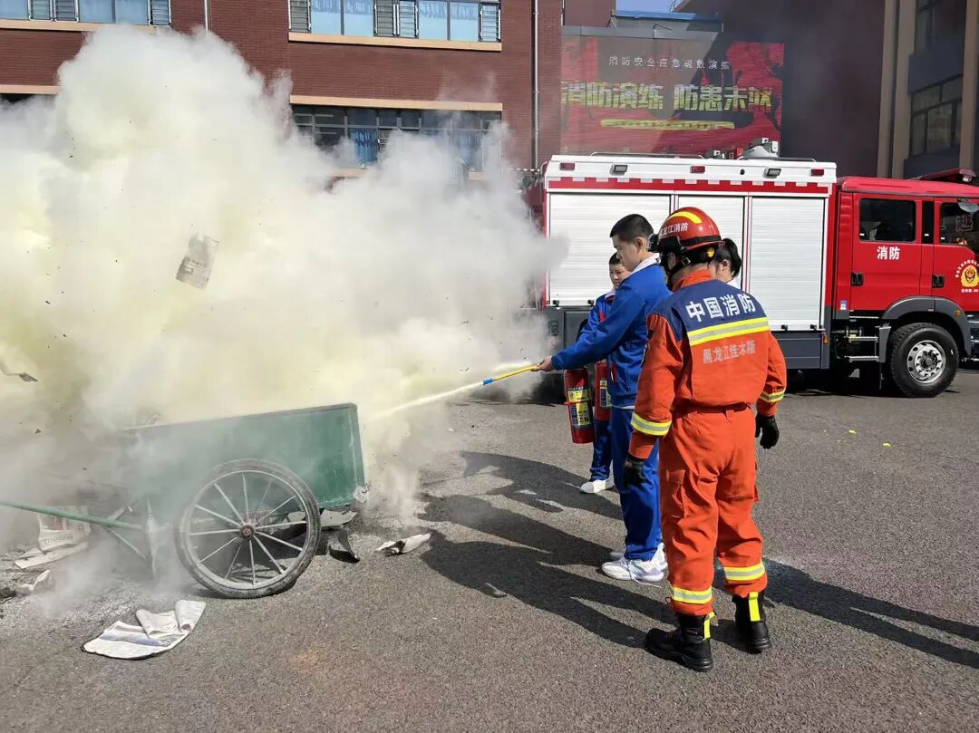 在消防员的专业指导下,教职工代表和学生代表依次上前进行实际操作,亲身体验灭火的过程,在实践中掌握了正确使用灭火器的技能,进一步提高了应对初期火灾的处置能力。