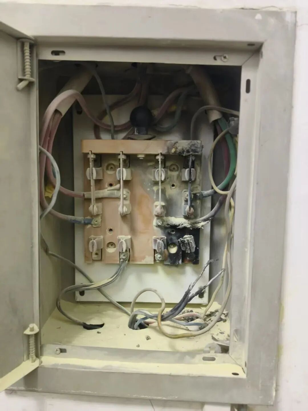 事发时,翟旭正在大厅办理业务,空气中弥漫的刺鼻焦糊味让他瞬间警觉——常年参与消防培训的他,立刻判断这是电气起火的征兆。他迅速起身排查,很快发现配电室方向冒出浓烟,确认是电表箱突发电气火灾且火势有蔓延趋势。