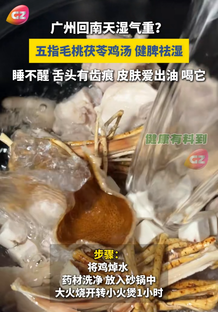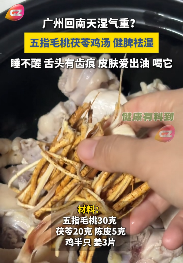 据广东省中医院介绍,用三黄鸡搭配五指毛桃、陈皮、茯苓、生姜、蜜枣等食材一同炖煮,有着健脾补肺、行气祛湿、舒肝助阳的作用。这种做法补而不燥,尤其适合岭南地区初春湿气重、天气忽冷忽热时,那些感觉精神疲惫、肢体乏力、没胃口、胸闷胁胀的人调理身体。