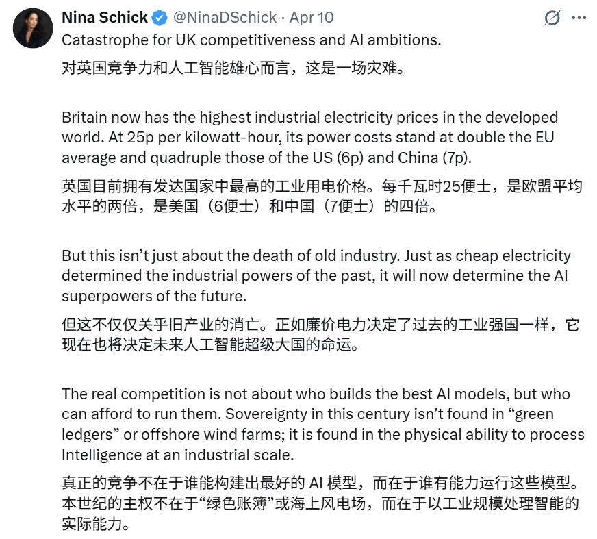 2025年9月OpenAI宣布Stargate UK计划,与NVIDIA等合作增强英国算力,后因英国能源成本高、监管环境等问题暂停。英国工业能源价格高,电网接入延迟,版权法规也让OpenAI担忧。
