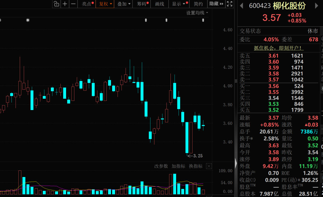 柳化股份的核心业务是双氧水的生产与销售。今年以来,公司股价累计下跌超过4%,最新总市值为29亿元。
