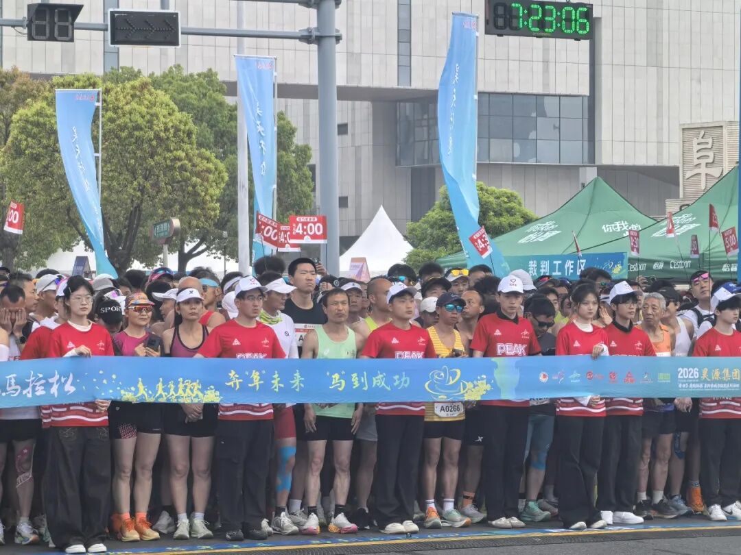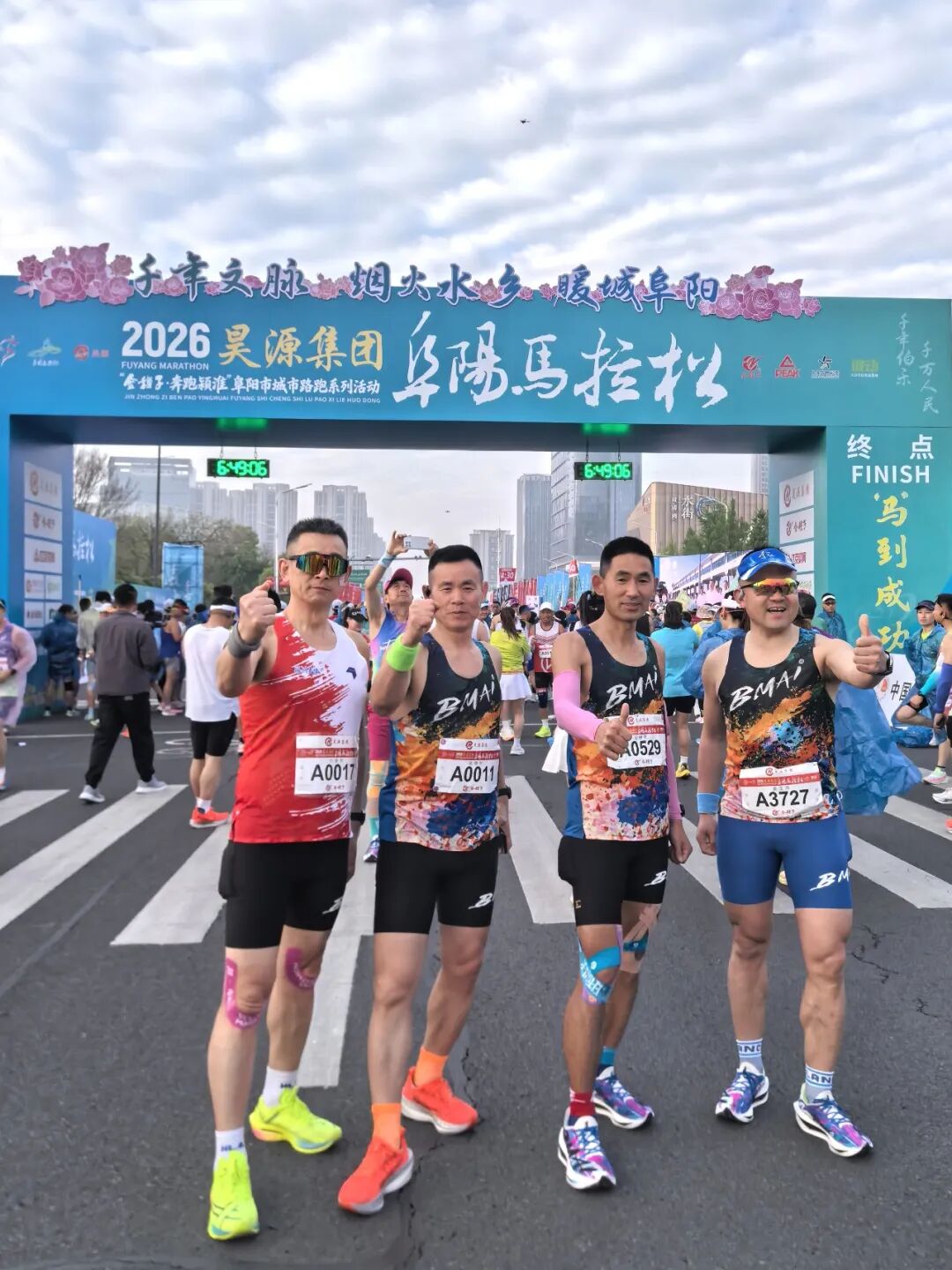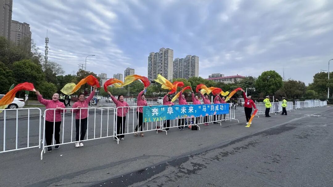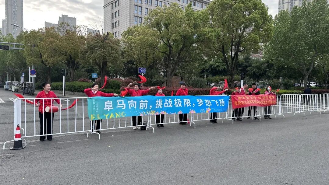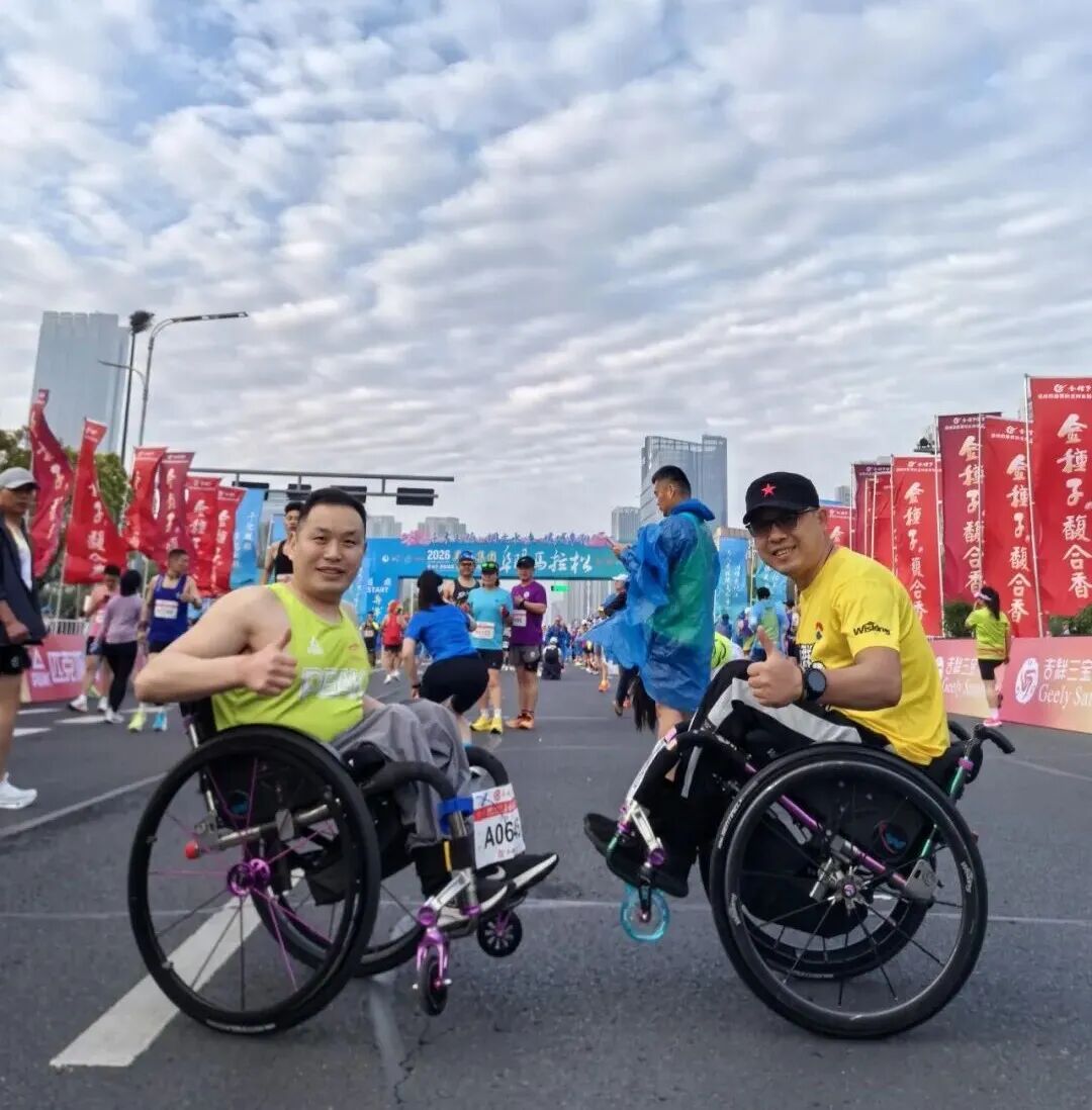 一支外地的轮椅跑团也如约来到了现场,十余名跑者共同参与这场阜阳马拉松。