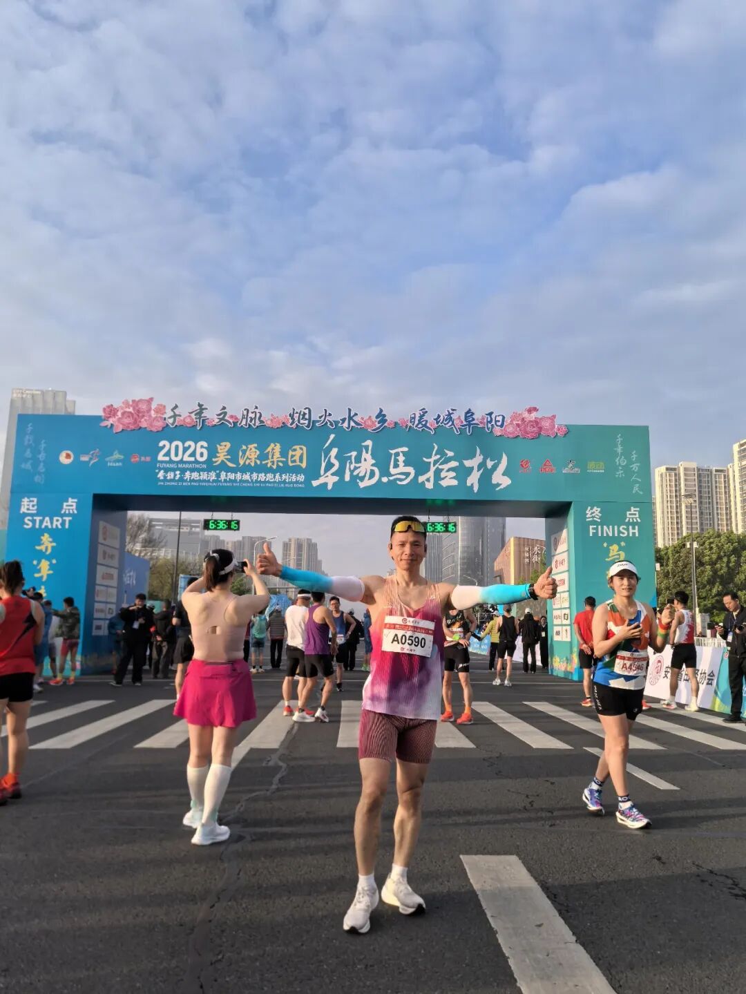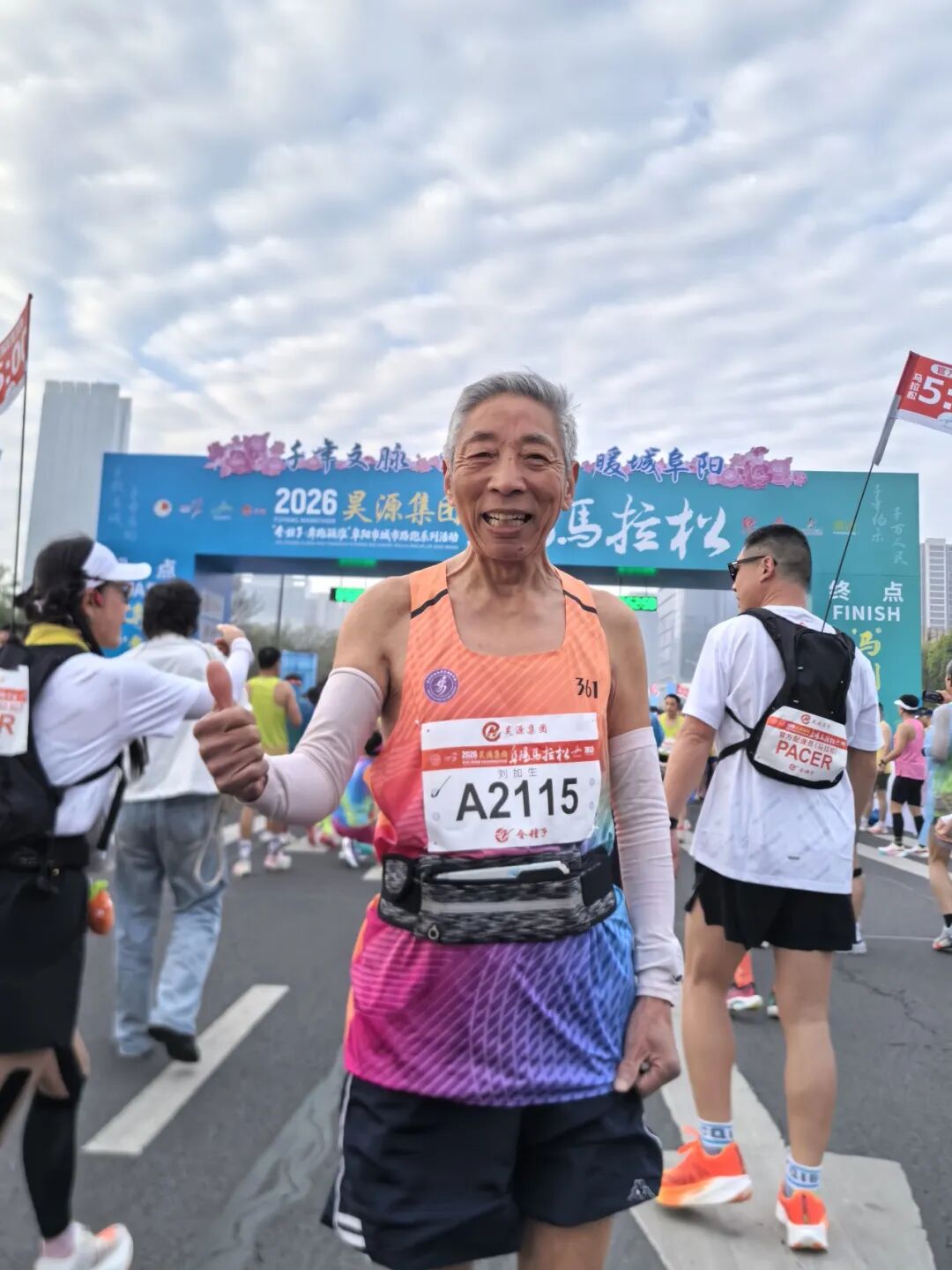 72岁的跑者刘加生,这是第一次从武汉来到阜阳,他忍不住称赞阜阳人民实在太热情了。