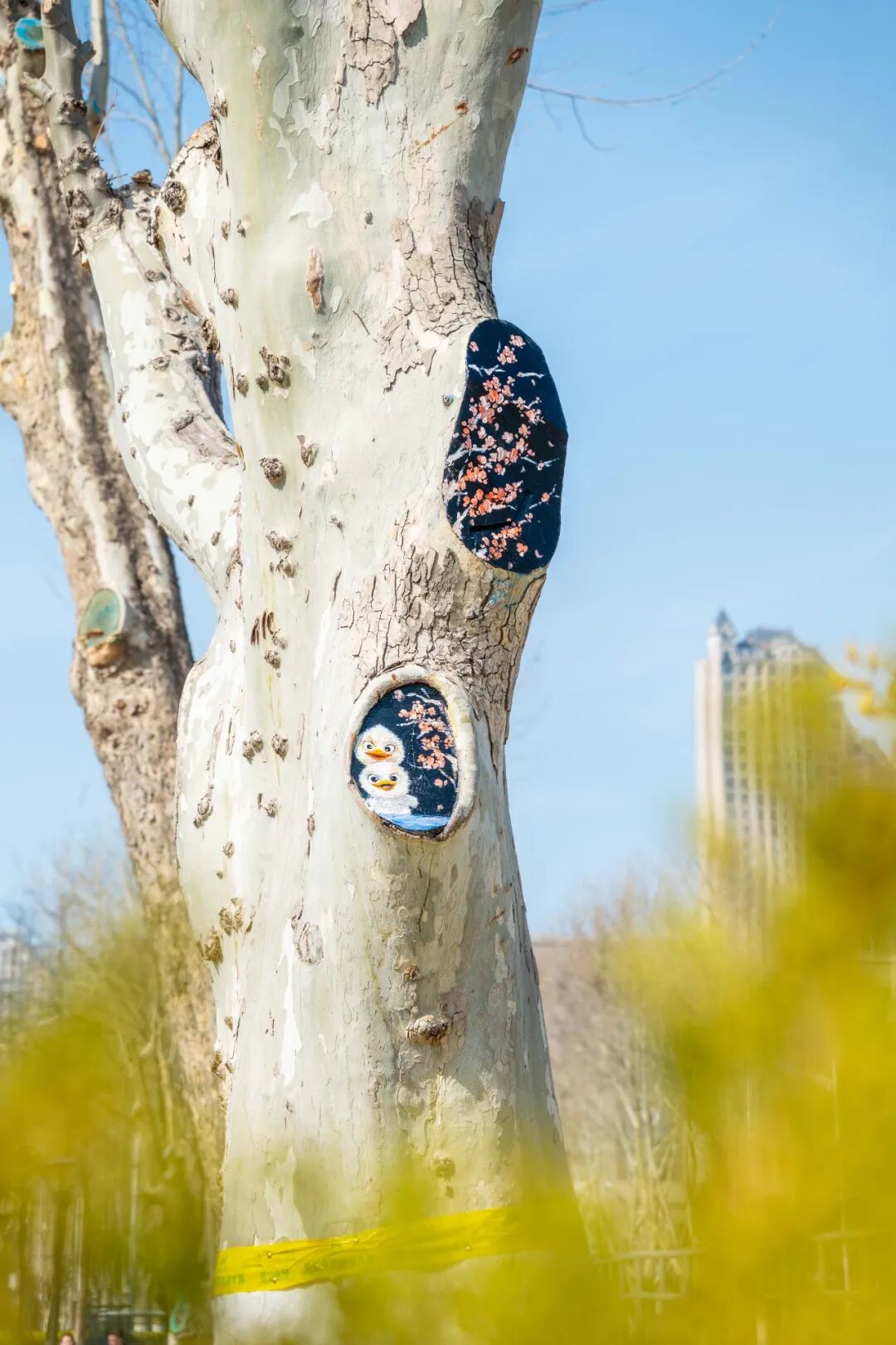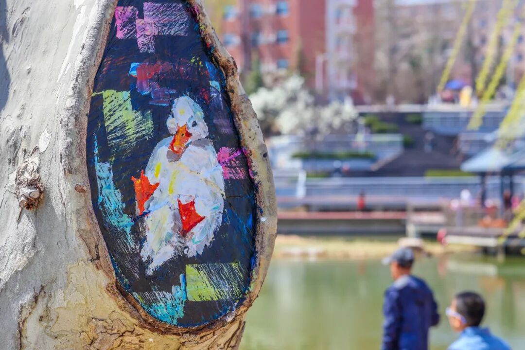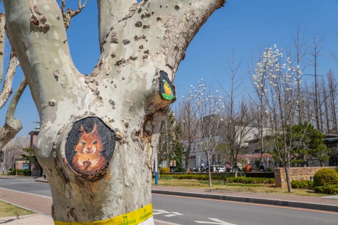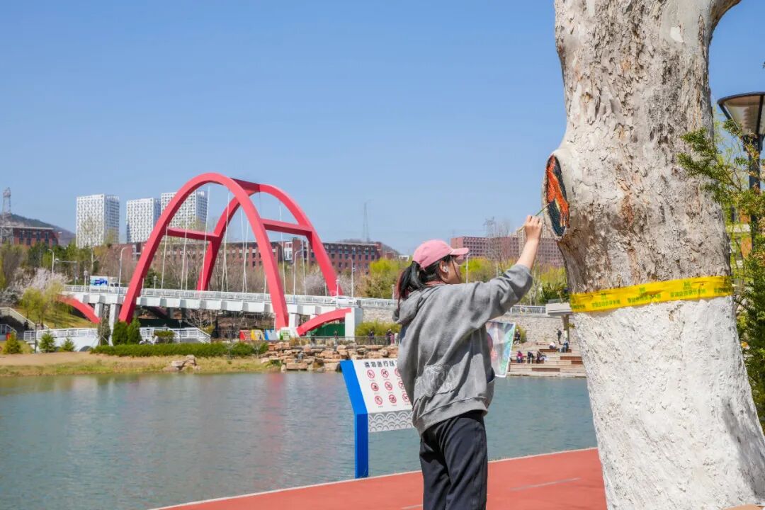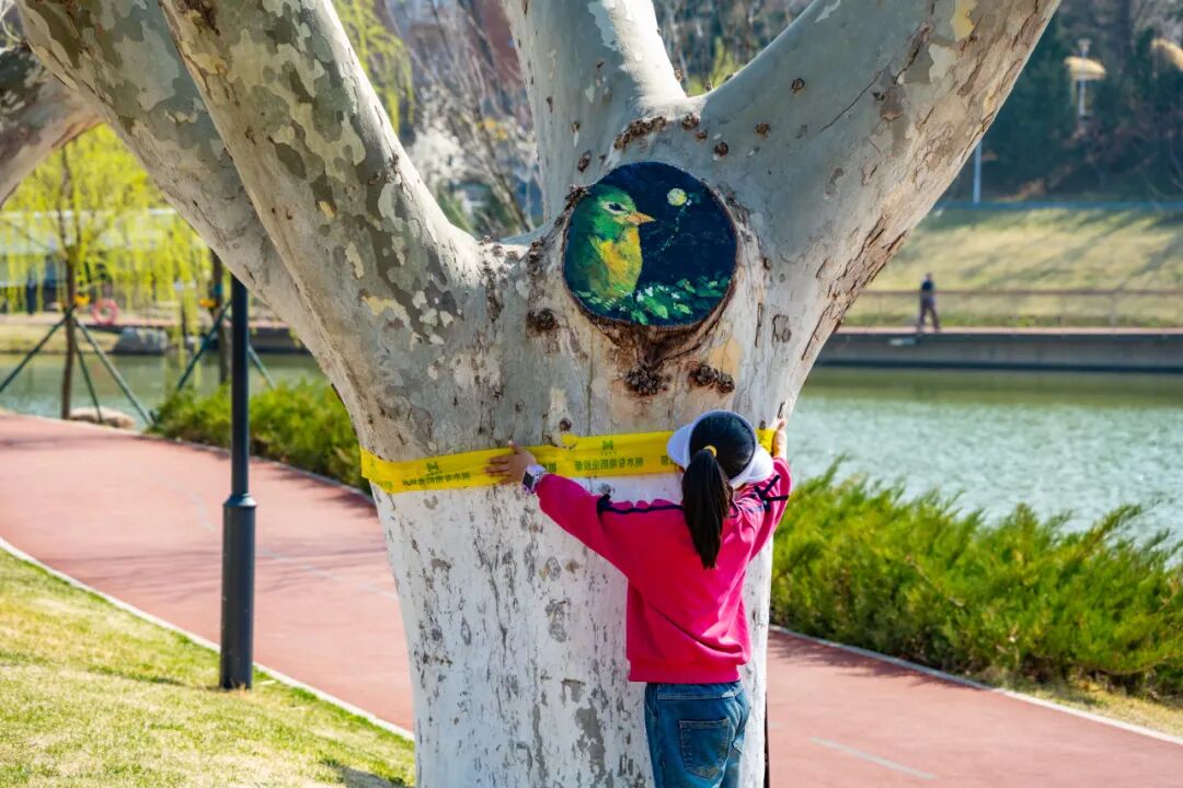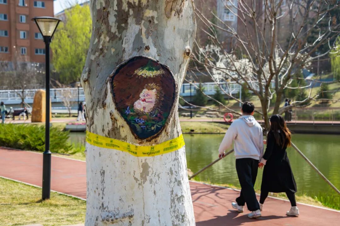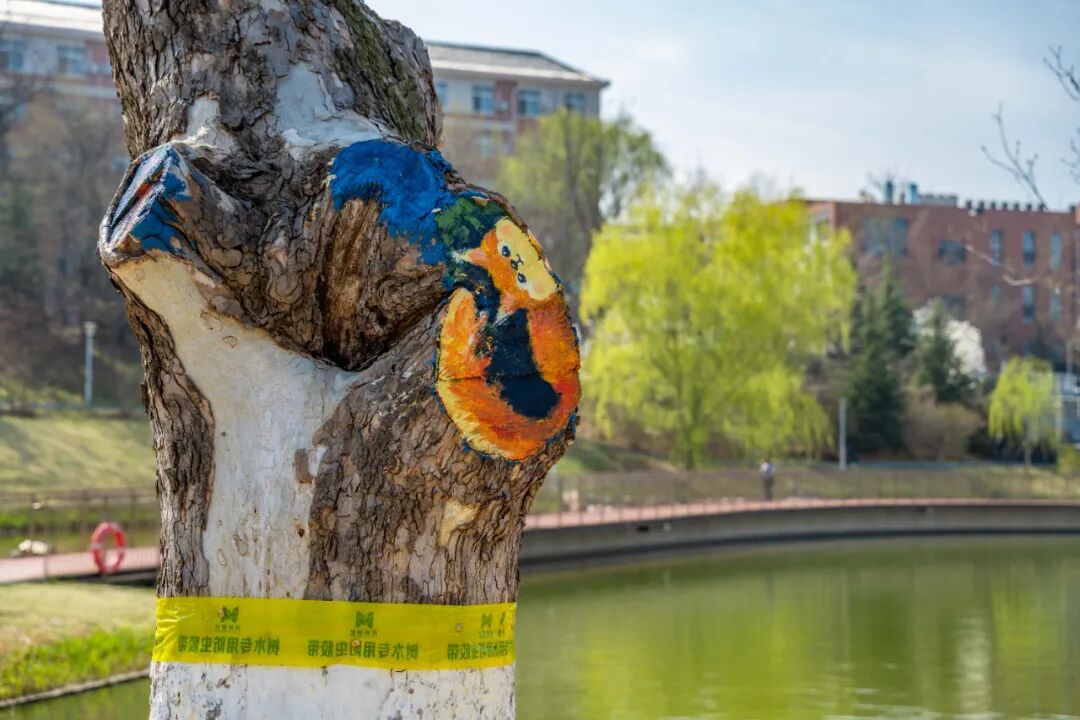 大工凌水湖迎“新伙伴”,树干彩绘添春意