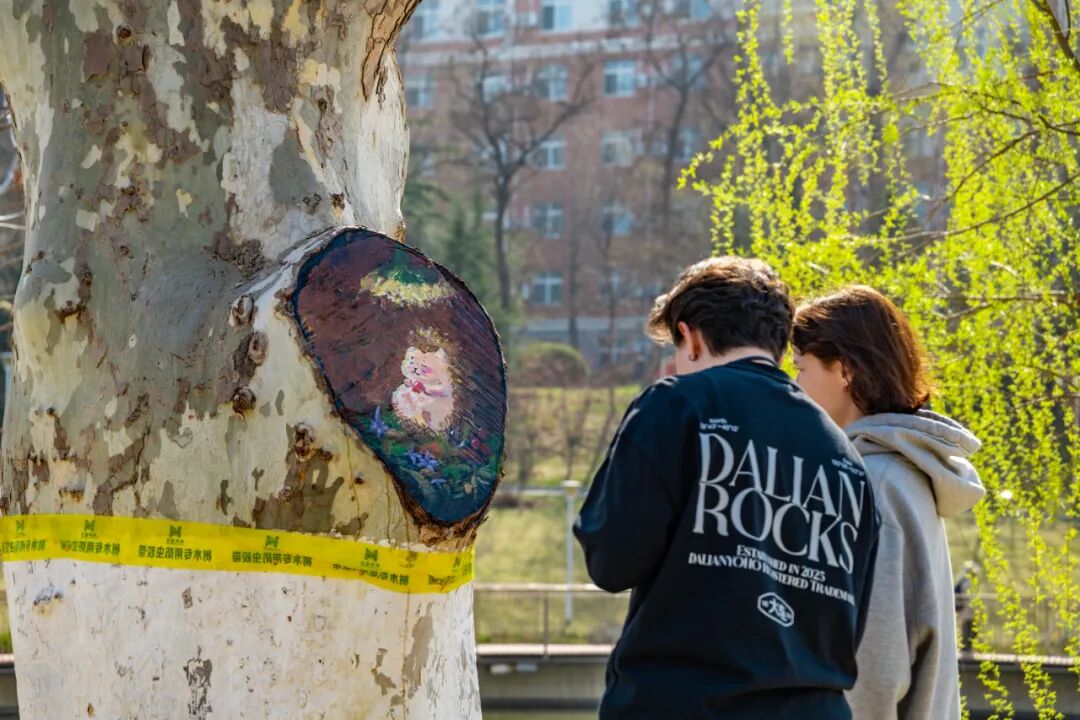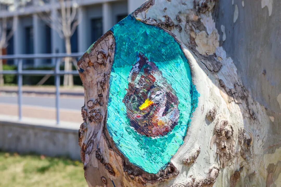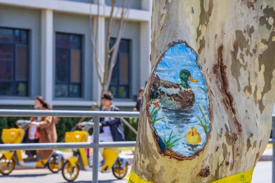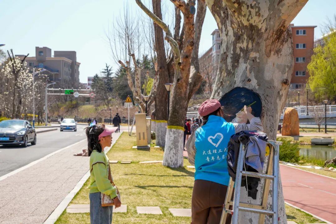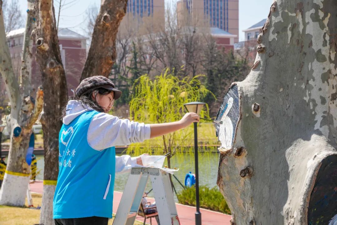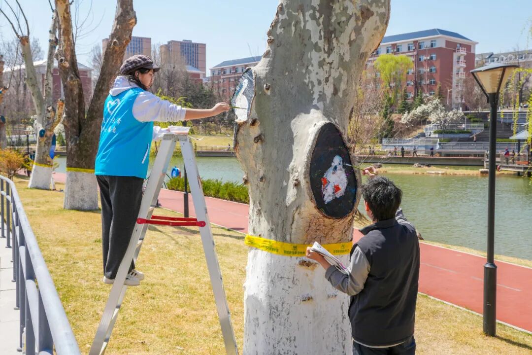 大工学子们用妙笔为树干“添彩”