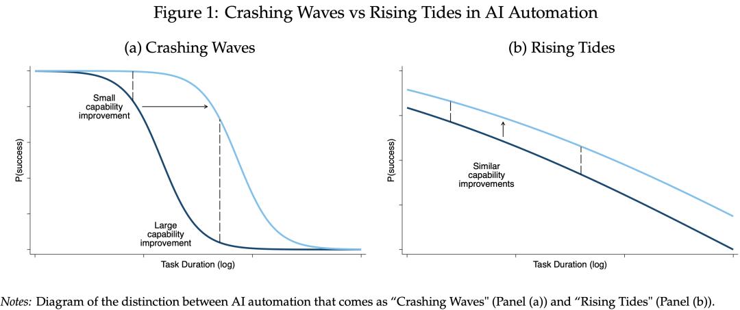 研究发现,目前AI已能以最低可接受质量完成50%至75%的文本类任务。但它强调核心观点:AI进化是缓慢上涨的潮水,而非一夜淹没一切的海啸。