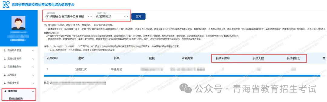 原标题:《青海2026年高职院校分类考试招生提前批次一志愿投档信息查询公告》