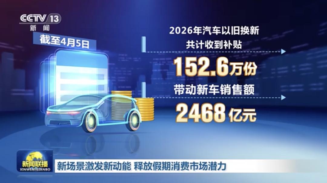 不过,在购车补贴政策的推动下,前三个月的车市又透出一丝希望。商务部最新数据表明,截至4月5日,2026年汽车以旧换新补贴申请已达152.6万份,带动新车销售额2468亿元,成为低迷车市中的一大亮点。