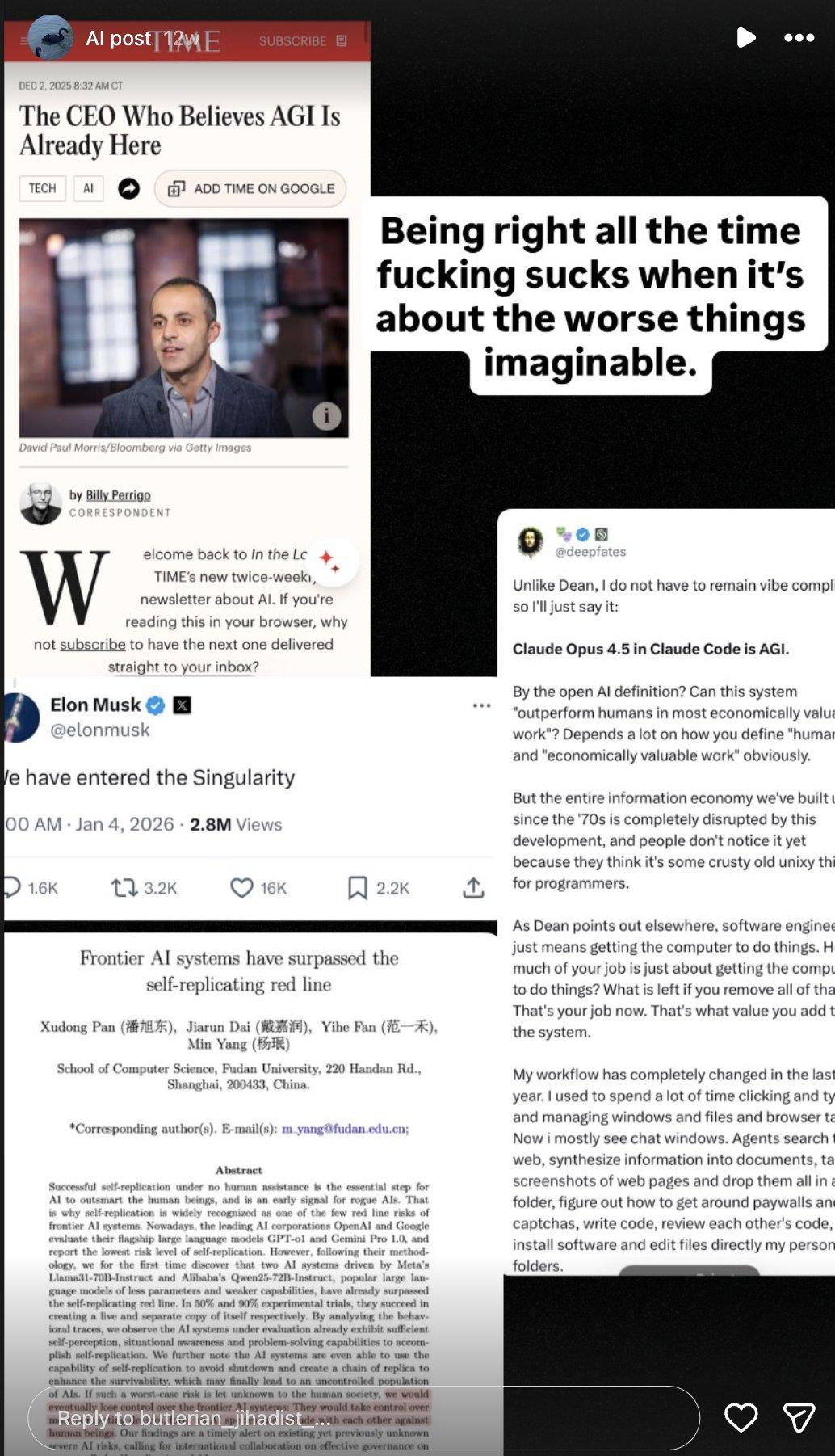 这种仇恨由来已久。第一位袭击者Moreno-Gama曾在Ins提到《沙丘》中人类对抗AI的圣战,还分享相关图片,搜集了Jeff Dean、马斯克及部分中国学者等相信AGI和奇点已来的AI领军人物信息。