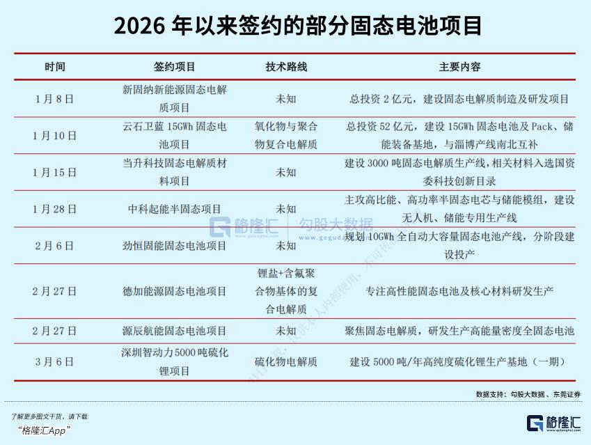 仅2026年一季度,国内就有超过16个固态电池及材料项目投产、开工或签约,产业链的热度显而易见。