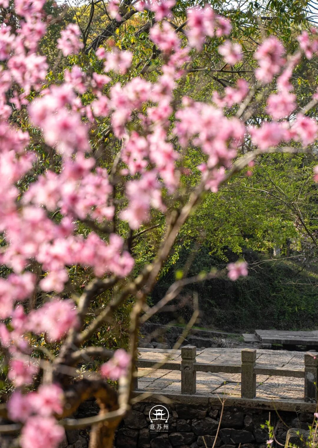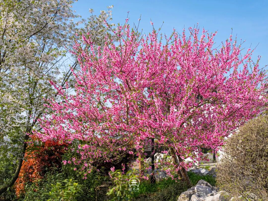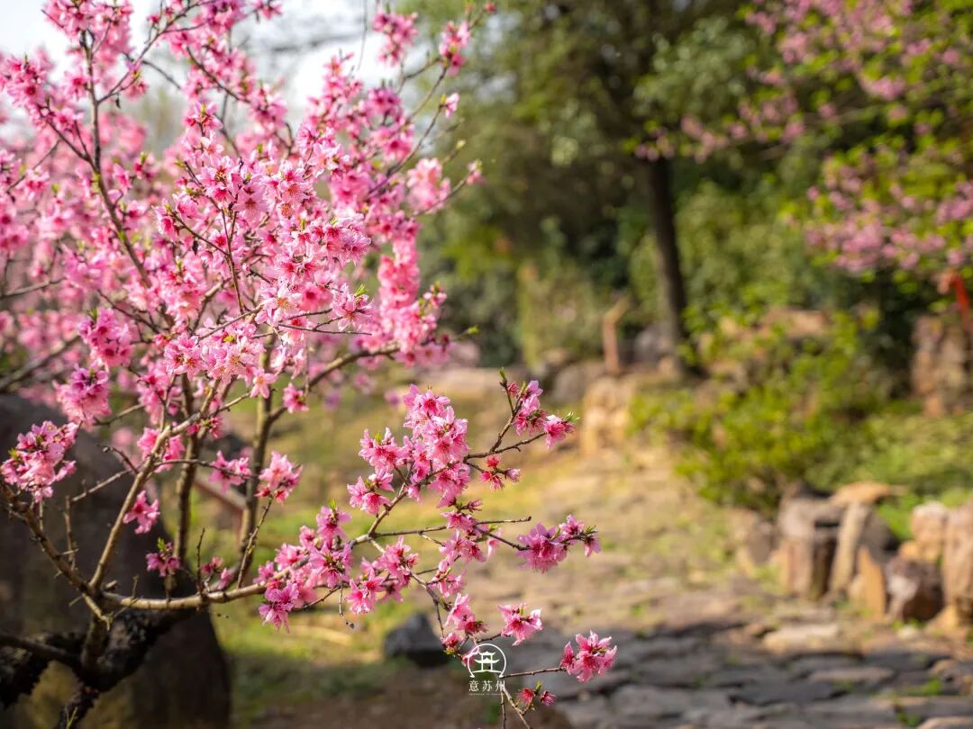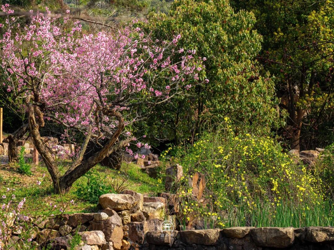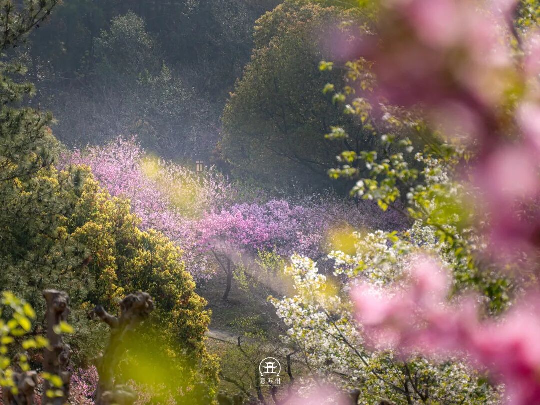 苏州吴中区的渔洋山,正是将“江南春日天花板”化为实景的所在。阳春三月,渔洋山的桃花溪与桃花潭边,百亩桃花竞相绽放,漫山的粉白如同打翻的胭脂盒,把整座山晕染成一幅灵动的春日画卷。