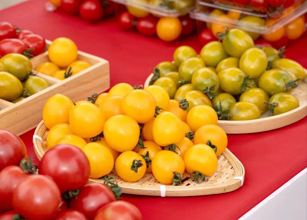 上午10点半,活动现场热闹非凡。“龙珠”“金典一号”“青霞66”等多个品种的彩色小番茄被整齐地摆放在各个展位前,吸引了众多游客停下脚步品尝。市民刘女士在几个展位转了一圈后,手里已经拿了四五盒小番茄。“味道特别好,和超市里卖的不一样,不仅口感好,番茄的香味也更浓郁。”刘女士一边品尝,一边满意地点头。