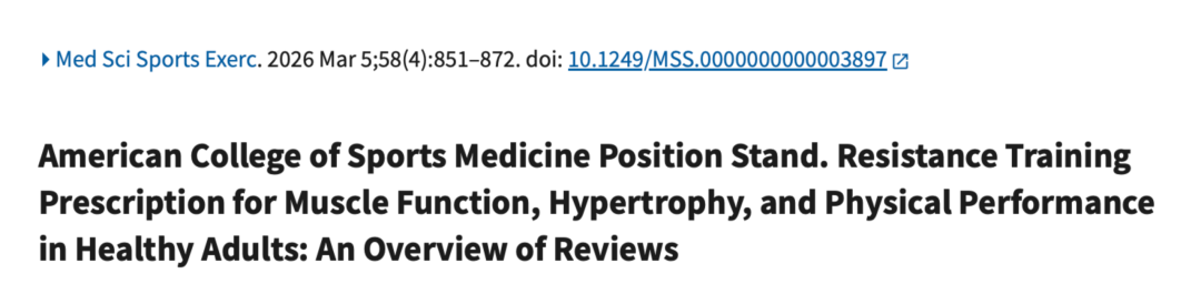 ②American College of Sports Medicine position stand. resistance training prescription for muscle function, hypertrophy, and physical performance in healthy adults: an overview of reviews. Med Sci Sports Exerc. 2026, 58(4):851-872.