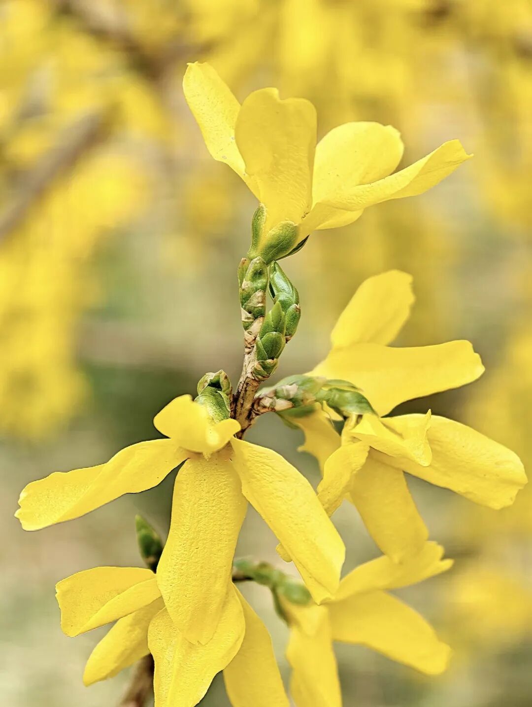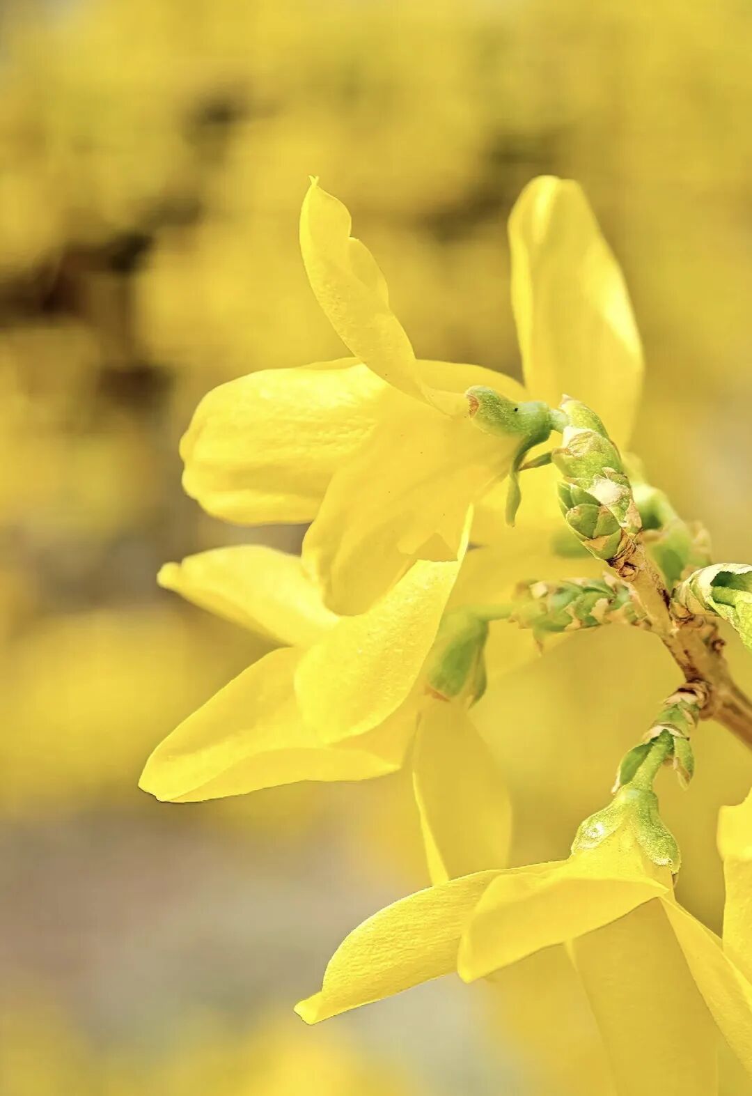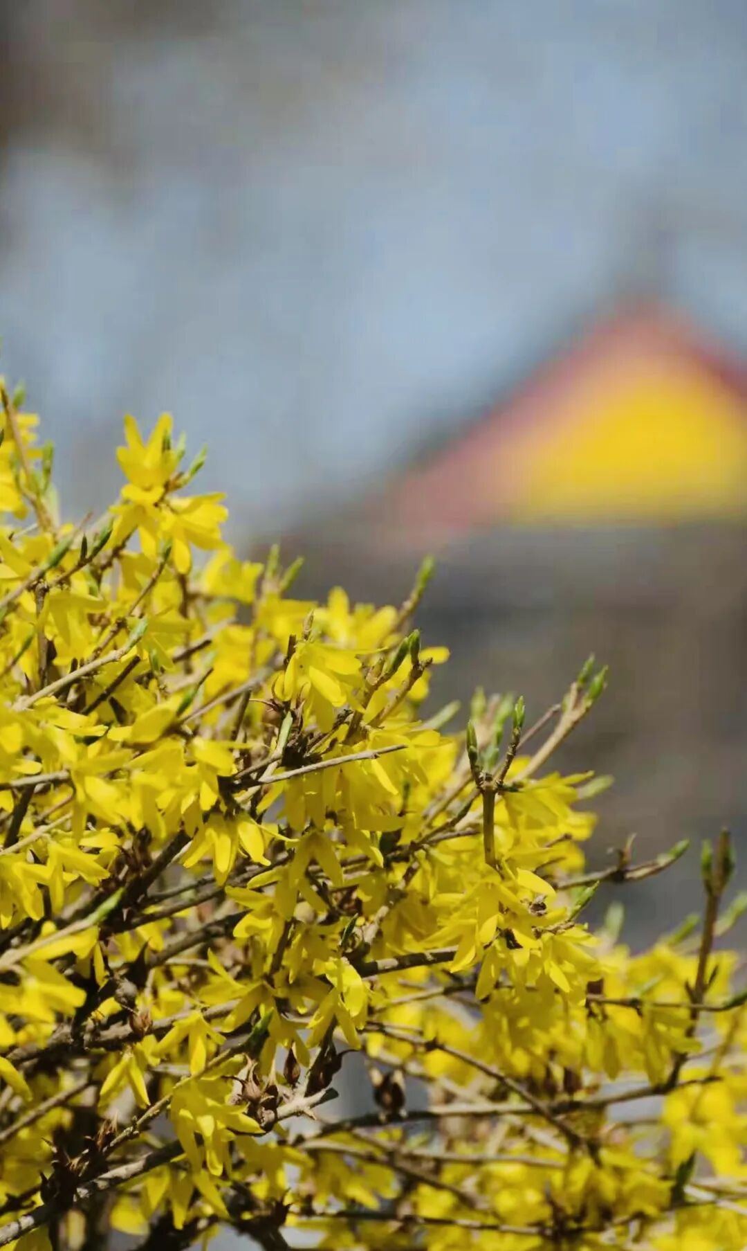 四月的长春,细雨时停时落,微风裹挟着草木萌发的清新气息。一丛丛连翘趁着这微凉的春意,悄然缀满枝头,细碎的金黄蔓延开来,没有张扬的姿态,却藏着动人的温柔。