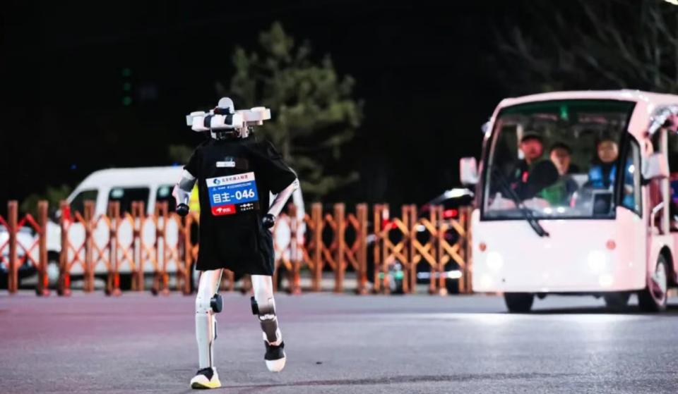 今年赛事将于4月19日开跑,全程超21公里,人类选手与人形机器人选手同场竞技,通过护栏隔离。