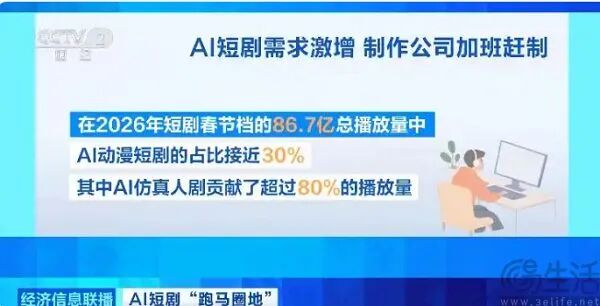 有趣的是,同为文化消费品,短剧受众对AI的态度却截然不同。央视新闻报道显示,2026年短剧春节档86.7亿总播放量中,AI动漫短剧占比近30%,其中AI仿真人剧贡献超80%的播放量。