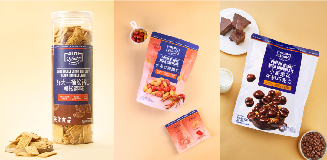 此次上新推出了多款新颖产品。如ALDI Delight好大一桶脆锅巴黑松露味,是奥家招牌零食的全新升级口味,醇香黑松露搭配玉米粉含量≥37%的非油炸粗粮锅巴,350克仅售13.9元;ALDI Delight小龙虾腰果仁,内含真实麻辣小龙虾,100克仅售19.9元,是夜宵下酒的好选择;ALDI Delight小麦爆花牛奶巧克力,酥脆小麦爆花搭配丝滑牛奶巧克力,增加咀嚼趣味性,120克仅售16.9元。