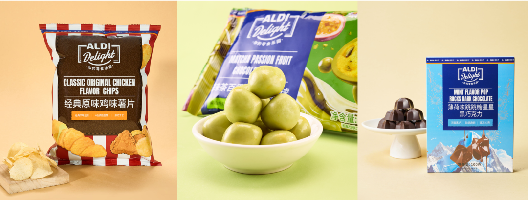 巧克力品类推出多款层次丰富的新品,如ALDI Delight麦丽素抹茶百香果巧克力球120克装,奶香、茶香、热带果酸层层递进;ALDI Delight薄荷味跳跳糖星星黑巧克力100克装,清凉、醇香、跳跃三重口感交织,二者售价均为19.9元。