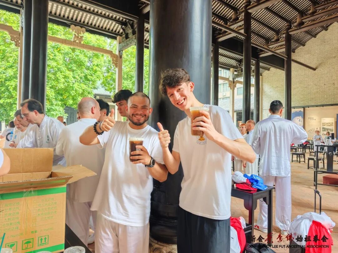 休息时,他们品尝起新会陈皮咖啡,醇厚的咖啡香里融入了陈皮的清新甘润,让远道而来的洋弟子们觉得新奇。大家围坐在一起,在轻松的氛围中交流习武心得,感受江门“三点三”——侨乡特有的悠然午后时光。