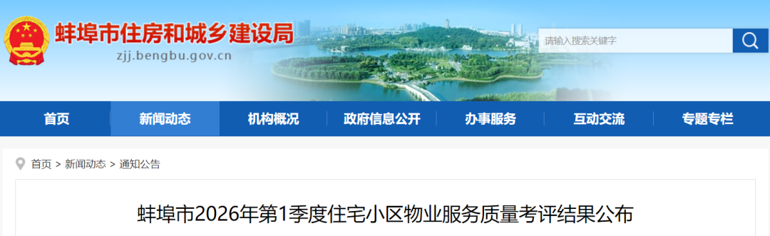 蚌埠市2026年第1季度住宅小区物业服务质量考评结果公布