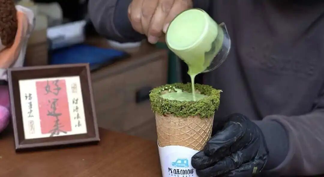 当天下午,记者在现场看到,从传统的抹茶冰淇淋到创意满满的抹茶脆脆杯,各类特色小吃陈列整齐,琳琅满目,吸引了不少市民驻足品尝、选购。