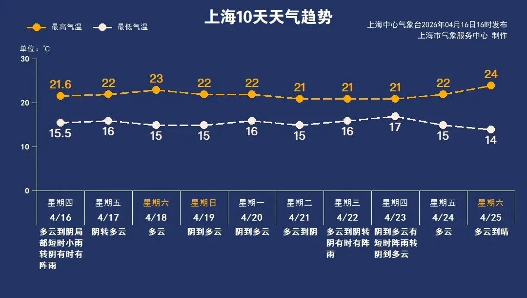 未来一周,上海的气温总体稳定在15到23℃之间,早晚比较凉,白天则很舒适。