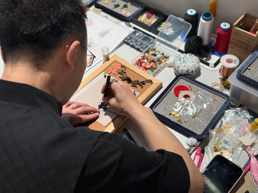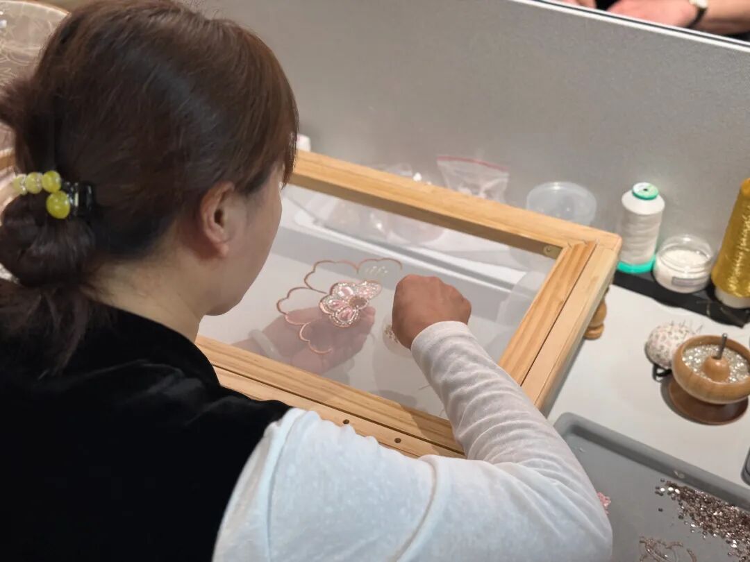 工坊内的盘扣、刺绣工艺展示