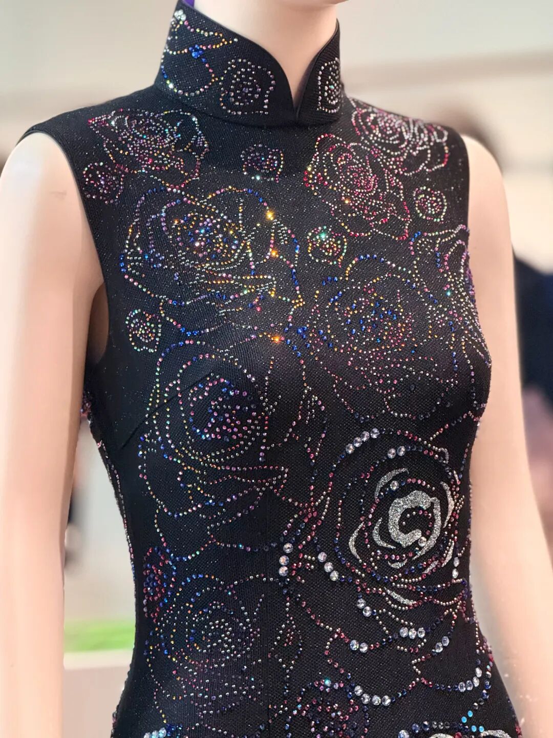 “一件高定旗袍,是穿在身上的东方艺术。”步入蔓楼兰高级定制工坊,品牌设计总监左丽云指着一件缀有近两万粒水晶的礼服向记者介绍。