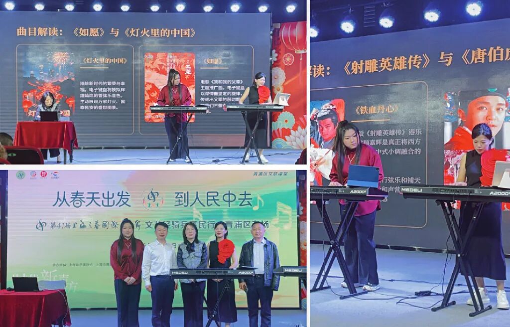 作为“文艺两新”一员,参与青浦区专场演出,用电子琴带来分四大篇章的音乐导赏,我内心满是温暖与力量。活动以“时代新声·潮涌东方”为主题,我们不仅演奏红色经典、民歌与新时代主题作品,还借助电子琴的丰富音色和节奏功能,现场普及音乐知识,拆解音乐魅力,让专业艺术变得易懂。用亲民形式让高雅音乐贴近日常,让观众感受艺术之美。依托上海之春平台把跨时代音乐送到百姓身边,正是“文艺轻骑兵”扎根基层的实践。未来我们会继续深耕惠民活动,以音乐传递美育力量!