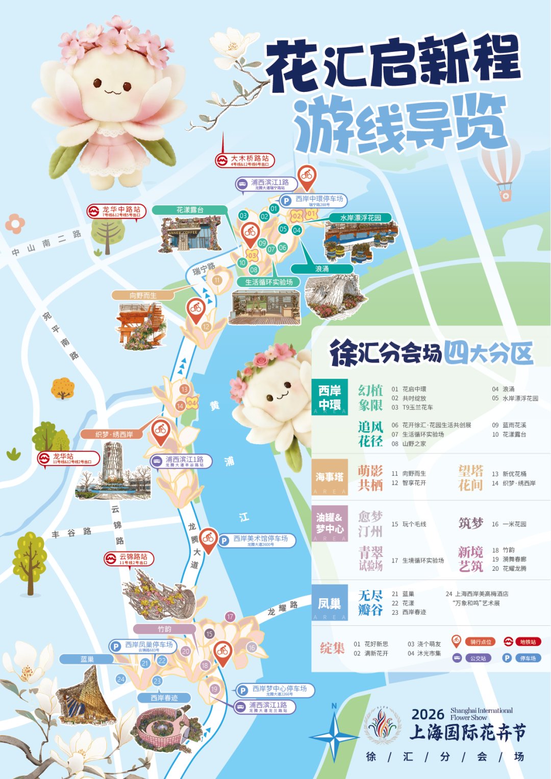 繁花汇聚、商展联动、全民共享,本次花卉节亮点纷呈、活动丰富!届时,花卉节将结合五五购物节、橱窗艺术季、爵士春天音乐节、徐汇市民体育节等活动,以花为媒介,串联GATE M西岸凤巢、GATE M西岸梦中心、西岸中環三大商业体,布置近40处特色景点,开展20余场精彩活动,举办4处花漾市集,与近30家品牌深度合作,推出Citywalk、Cityride一站式赏花打卡地图!