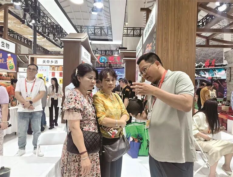 旁边,广东采购商陈先生正和山西福南春山茱萸生物科技有限公司负责人王文雅互加微信。该公司以“阳城山茱萸”这一国家地理标志农产品为核心,融合非物质文化遗产古法炮制技艺,传递着重阳茱萸文化与孝道文化,丰富了品牌内涵。