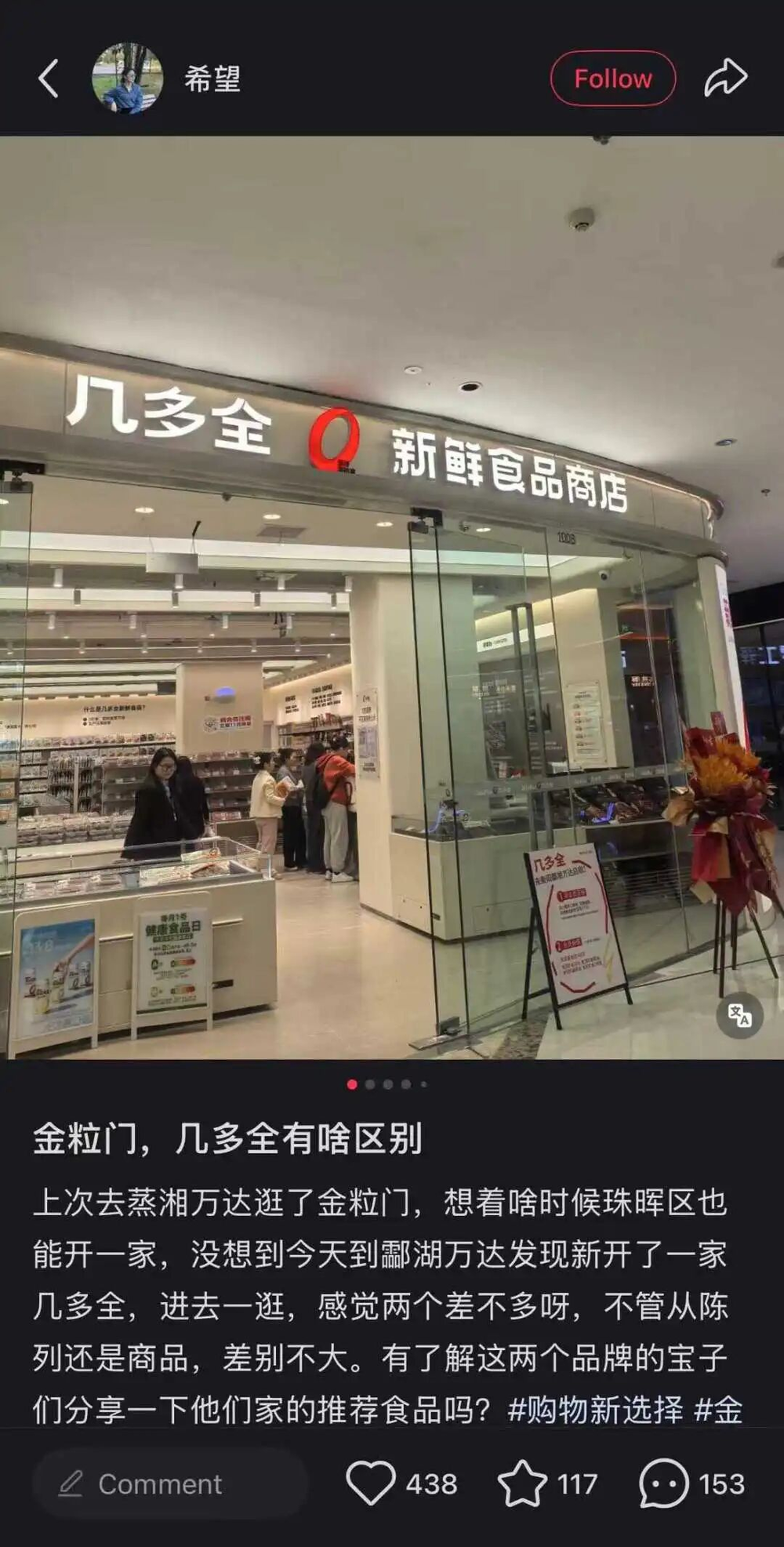 事实上,在湖南市场,金粒门与几多全已出现在同一商场,不少消费者反馈“看起来差不多”,品牌区隔正在迅速压缩。