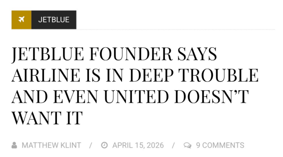 这意味着,JetBlue Airways正在失去潜在的战略退出途径。