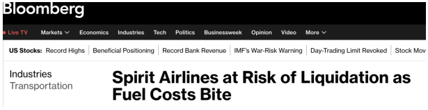 受美国与伊朗冲突的影响,航空燃油价格不断上涨,这对成本敏感度极高的超低成本航司造成了直接冲击。最新消息显示,Spirit Airlines的财务状况正在迅速恶化。