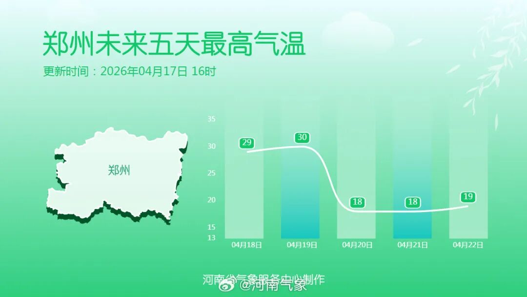 4月19日:晴天转多云,傍晚至夜间有阵雨、雷阵雨,偏北风3-4级,阵风6-7级,气温16~30℃