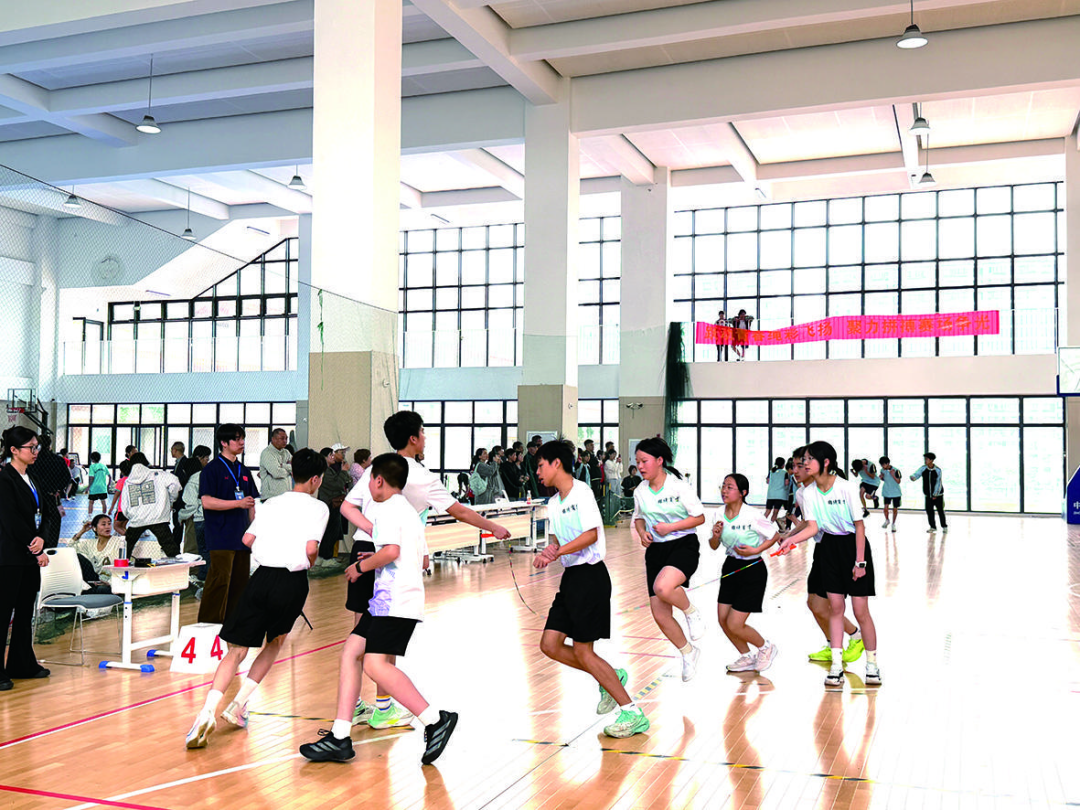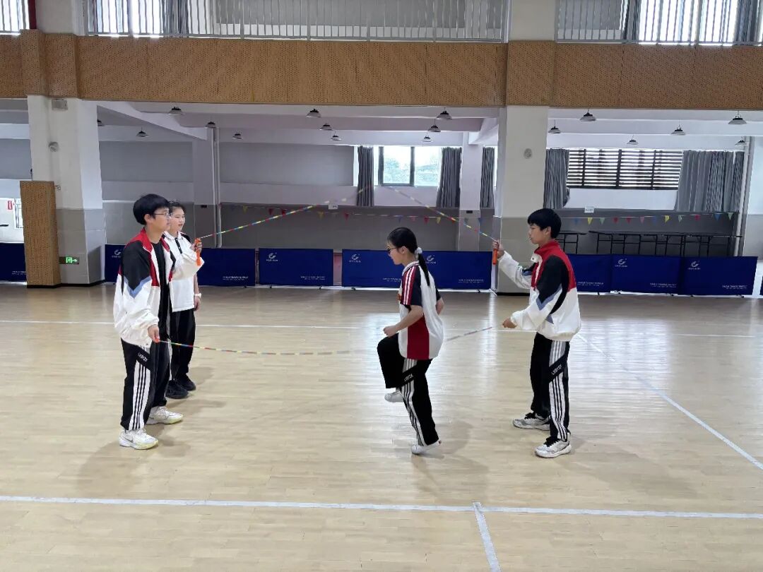 实验中学则将花样跳绳融入了日常教学,它不仅是学生课间的运动项目,还被纳入了校本课程。喜爱跳绳的学生可以选择花样跳绳社团课,老师会在课上传授跳绳技巧和相关知识要点,帮助学生进一步提升跳绳技术。该校校长施小明表示,此次比赛共有12名学生参加,学校会以各类赛事为平台,锻炼学生的花样跳绳技能,助力他们在跳绳领域取得更好的成绩。