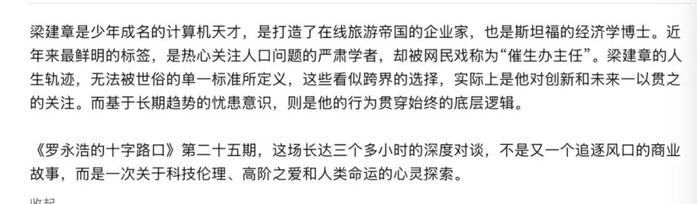 当我刷到梁建章做客罗永浩播客的介绍语时,整个人震撼到近乎“间歇性失灵”。